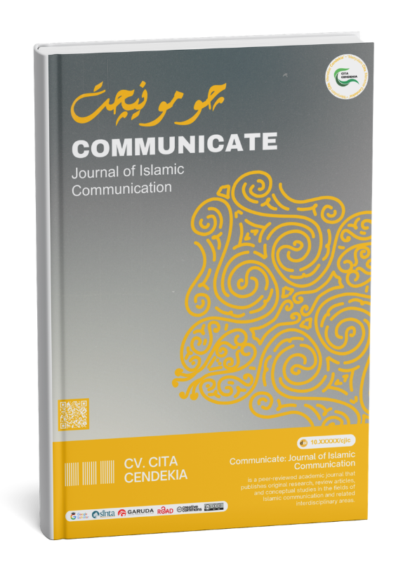 COMMUNICATE Journal of Islamic Communication is a peer-reviewed academic journal that publishes original research, review articles, and conceptual studies in the fields of Islamic communication, media studies, and related interdisciplinary areas. The journal focuses on theoretical development, empirical research, and practical innovations that address contemporary issues in media, da'wah, and communication practices across diverse social and cultural contexts.